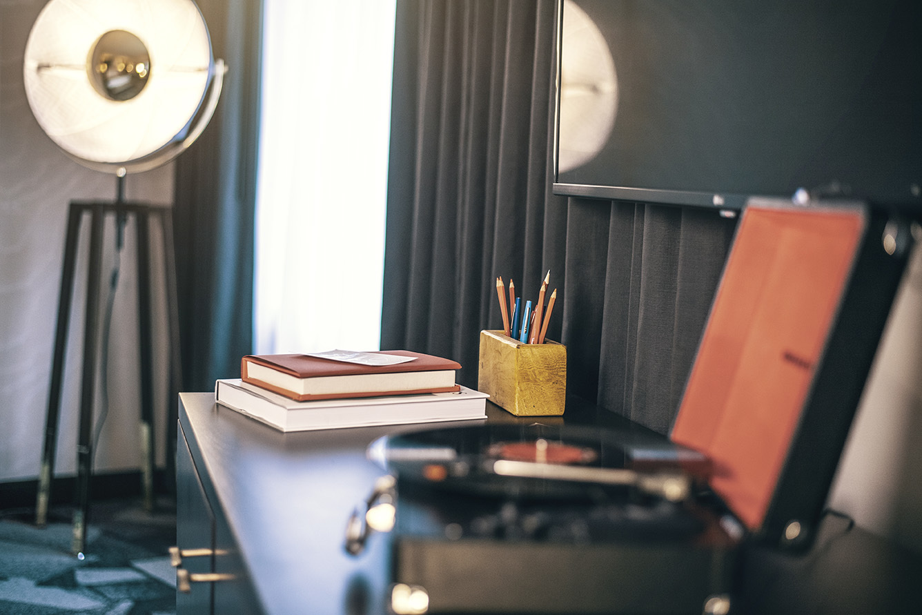 In terms of downtown Milwaukee hotels, the Deluxe King and Double Queen are far from your typical hotel room. Art from local makers, a record player, butcher-block paper, and views of downtown Milwaukee make this room the perfect place to enjoy a quiet moment before heading out to see a show or explore the city.